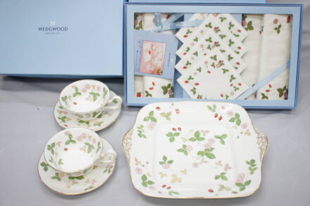 ウェッジウッド ワイルドストロベリー ティータイムセット (ティーカップ&ソーサー、トレイ、ティーマット、コースター)