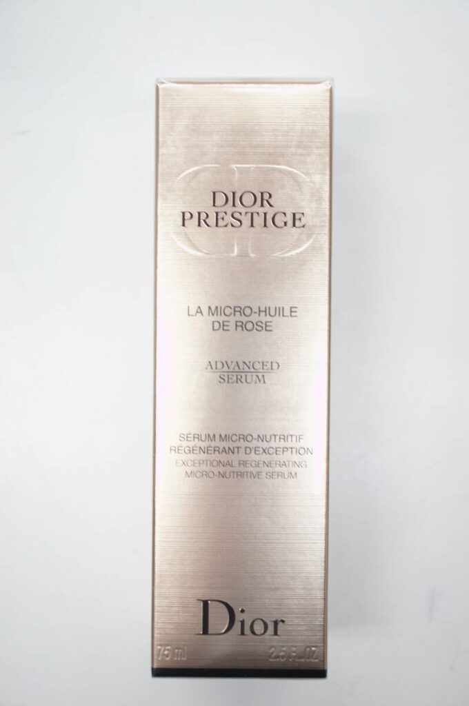① 『プレステージ』はディオールの中でもエイジングケアに特化したプレミアムラインで、特にこの『マイクロ ユイル ド ローズ セラム』は「ご褒美コスメ」として指名買いが絶えない超人気アイテムです。 化粧品や香水は中古市場でも人気が高く、品薄状態が続いている為、未開封のお品物であれば高額査定を提示することも可能です。 ②化粧品は製造年月日や保管状態が非常に重要です。 今回は「先日いただいたばかり」という鮮度の良さと、未開封のバージンシールがしっかり残っていたことを最大に評価しました。